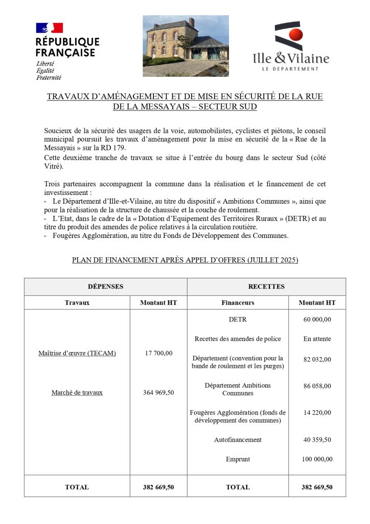 Travaux d’aménagement et de mise en sécurité de la rue de la Messayais Secteur Sud